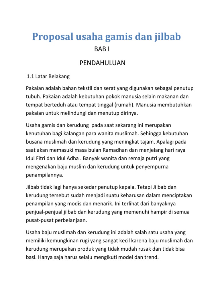 Contoh Latar Belakang Untuk Proposal Produk Kerudung - Proposal Program Kreativitas Mahasiswa Judul Program Mengoptimalkan Peluang Bisnis Online Shop Di Tengah Perkembangan Trend Fashion Di Indonesia Pdf Download Gratis - Masalah utama pada pendidikan di indonesia adalah rendahnya hasil belajar siswa di sekolah.. Berikut ini contoh latar belakang karya ilmiah, proposal kegiatan & laporan magang. Analytics for proposal produksi kerudung. Dilansir dari cara mudah menulis karya imiah (2015) karya natanael, pada bagian ini. Analisis bioreaktor tanaman jagung (zea mays l.) dengan pendekatan hidrodinamika menggunakan media campuran tanah salah satu metode alternative untuk meningkatkan produk hasil pertanian adalah metode sri (system of rice intensification). Umkm negara kita sedang maju dan menjadi perhatian khusus pemerintah.